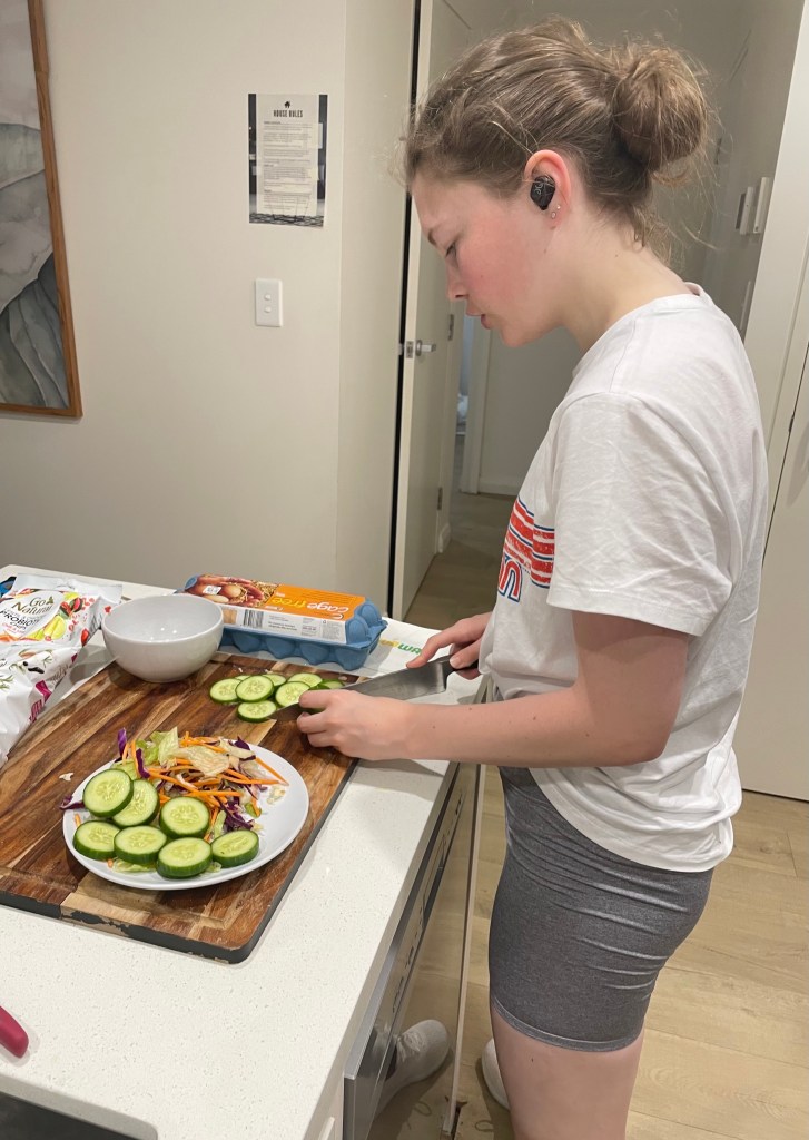 Lucy needs to be fully aware of her nutrition and less concerned about exercise, whereas for me it is the other way around i.e. I need to be fully aware of the exercise I’m doing and less concerned about nutrition. So the right thing for me to do is to join Lucy regarding nutrition. What does this mean? In the two weeks that we have been here there has been no chocolate, alcohol, energy drinks, biscuits or ice cream. The food selection is more salad based with chicken being the protein (and ham as a treat alternative). Pasta has been the easy option while we were setting up and working out menu preferences and now wraps are my preferred option. I am now trialing a rye variety, although these are rectangular in shape and this concerns Lucy quite a bit.