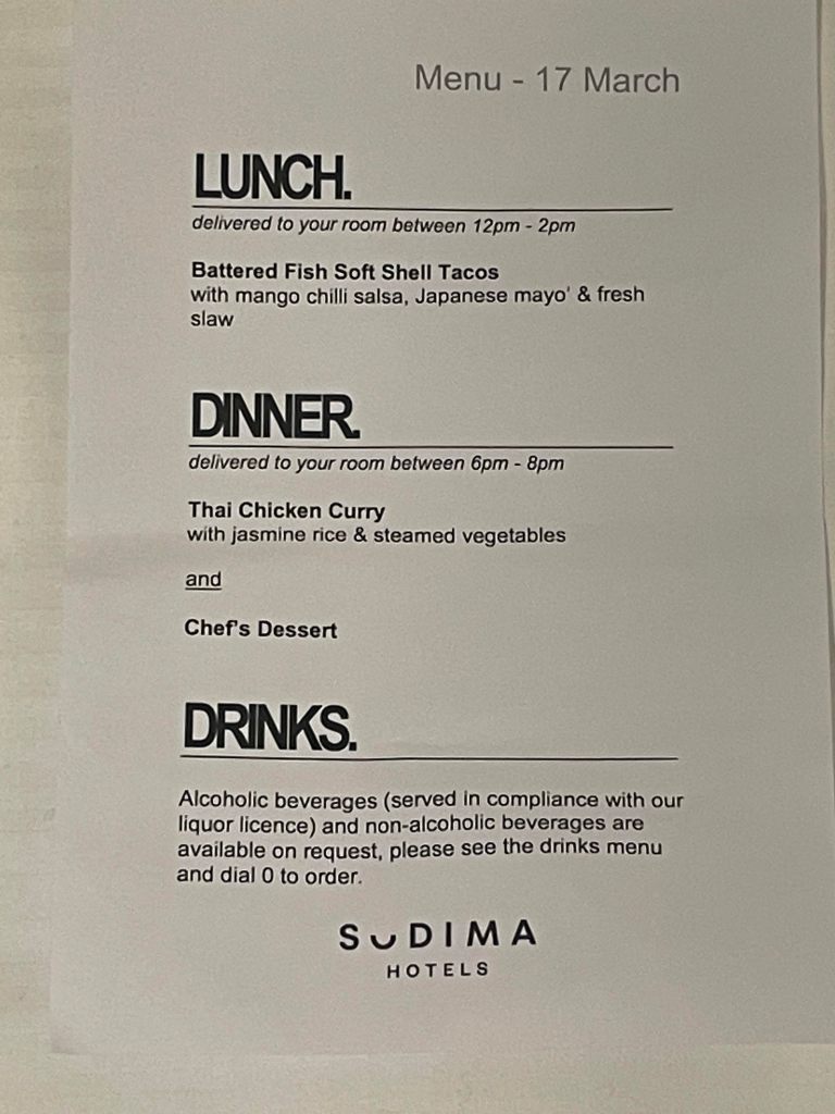 As I’m writing this I am patiently waiting for the Day 3 Covid test which is the first of two that we receive while in isolation (the second is Day 12). After the second test we are not allowed out of our rooms (i.e. no exercise) and that is for our own protection so that there is no risk of contamination with recent arrivals.